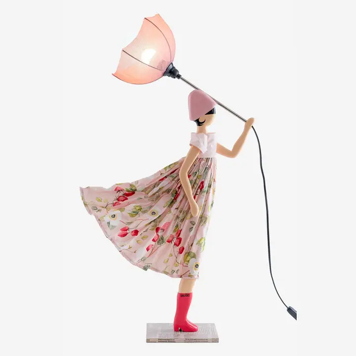En fantastisk bordslampa formad som en flicka med paraply.