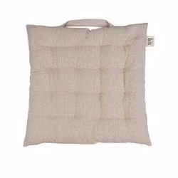Denna sittdyna är tillverkad av en blandning av återvunnen bomull och återvunnen polyester, vilket gör den till ett hållbart och miljövänligt val. Det praktiska handtaget gör den lätt att bära med sig.