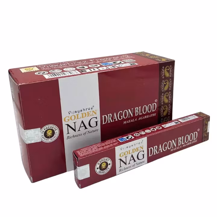 Golden Nag Rökelse Dragon Blood 35 kr Rökelsepinnar 15gram, ca 12s t pinnar. Brinntid ca 30 min. I lager. Lägg i korgen Dela Information Rökelsepinnar 15gram, ca 12s t pinnar. Brinntid ca 30 min.